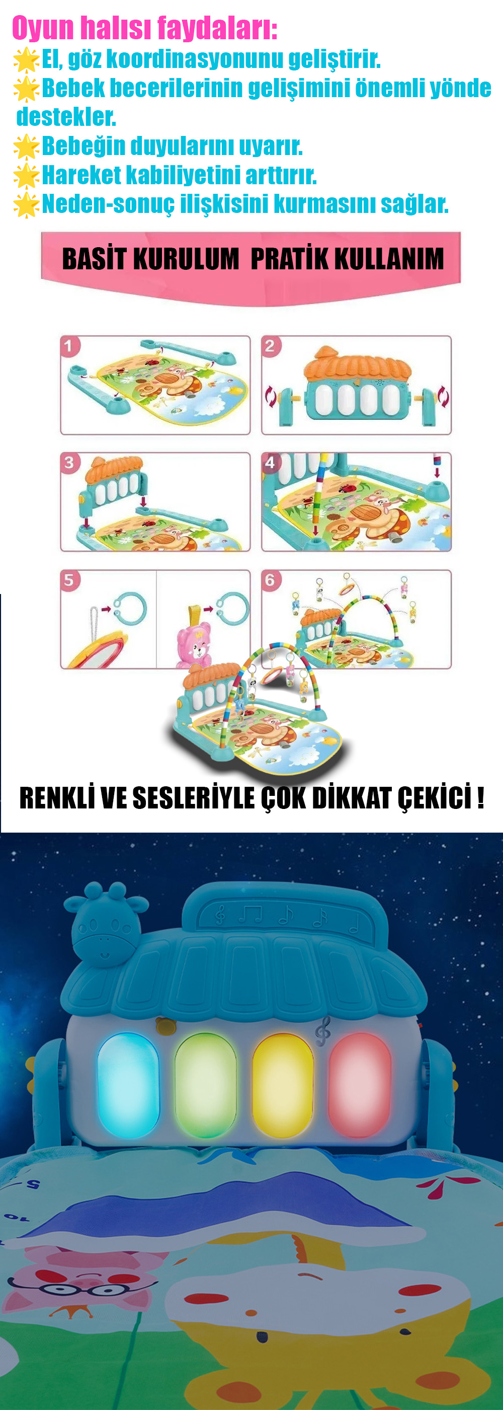 1 Adet PİYANOLU BEBEK OYUN HALISI -